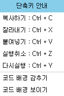 아직 영문자와 특수 문자, 숫자 입력에 어려움이 있다면, 코드 구문 블록의 버튼을 눌렀을 때 나오는 "코드 블록"을 이용해요.