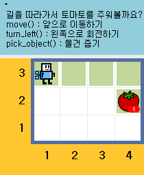 turn_right() 명령어는 없고 turn_left() 명령어만 있는 상태에서 오른쪽으로 바꾸려면 어떻게 해야 할까요? 잘 아는 학생 있으면 도와주세요!! 벌써 해결 방법을 찾았나요? 훌륭한 학생이군요. |
