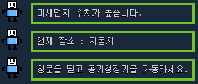 print("창문을 닫고 공기청정기를 가동하세요.")
