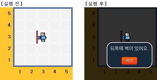 로봇 뒤쪽에 벽이 있는지 알아내는 명령어이다.벽이 있으면 true