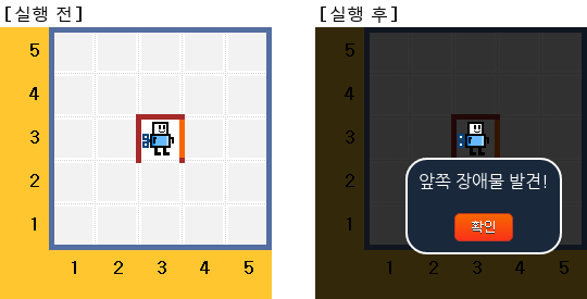 로봇 앞쪽에 장애물(벽 또는 문)이 있는지 없는지 알아내는 명령어이다.앞쪽이 깨끗한가(clear)라고 물어보기 때문에