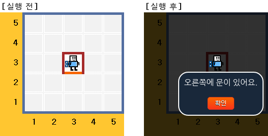 로봇 오른쪽에 문이 있는지 알아내는 명령어이다.문이 있으면 true