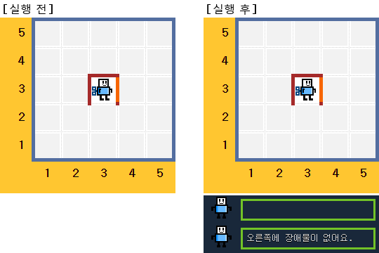 로봇 오른쪽에 있는 장애물이 무엇인지 알아내는 명령어이다.벽이 있으면 "wall"